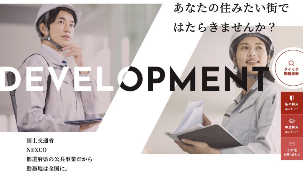 実質的な業務内容は「公務員の技術職」に近く、発注者の視点で工事管理に携わることができます。